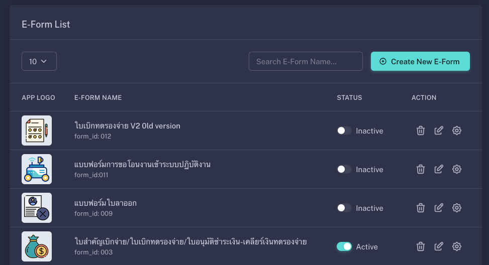 อีฟอร์มและเทมเพลตเอกสารเชื่อมกับแต่ละขั้นตอน